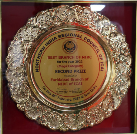 - 2nd Prize (2022–23) — Awarded to Faridabad Branch of NIRC of ICAI